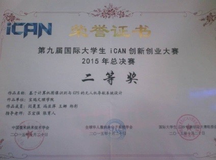 第九届国际老员工iCAN创新创业大赛中国赛区总决赛于2015年10月18日至20日在北京大学举行,通过网上作品提交和筛选,公司两件作品入围中国区决赛。经过作品展示和答辩等环节,闫昊昱等的作品《 基于计算机图像识别与GPS的无人机导航系统设计》获得大赛二等奖,刘超等的作品《救援机器人》获得大赛三等奖。