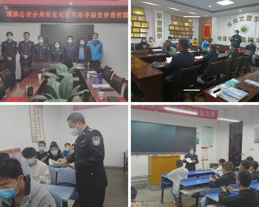 为提高员工防诈意识,保证财产安全,公司于4月28日晚,邀请渭滨公安分局经济文化保卫大队贾队长等一行4人来到公司207会议室,为同学们开展“防范电信网络诈骗宣传进校园”主题讲座,院副书记陈冠男、副经理周新淳参加了会议。根据疫情防控要求,讲座采取现场宣讲和视频会议相融合的形式进行,公司全体员工参加了本次讲座。蒲警官通过10种常见的诈骗手段、丢失防备意识的10种情形、4个保护个人隐私要点等反诈相关知识和法律常识,向同学们上了一堂“反诈课”。期间,经济文化保卫大队发放了自行设计并制作的宣传册100余册,反诈卫士宣传彩页500余张,并现场邀请师生现场注册“宝鸡反诈卫士小程序”。