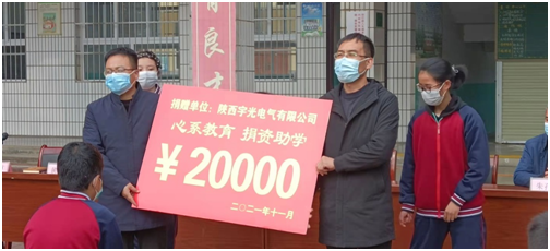 11月4日,陕西宇光电气有限公司为马江中学捐助20000元的捐资仪式隆重在马江中学召开,此次捐资助学是在公司周云波老师一年多的积极奔走、多方联系之下促成的。捐资仪式上,马江中学董事长侯波代表全校师生向tyc122cc太阳成集团和周云波老师送上锦旗和感谢信。